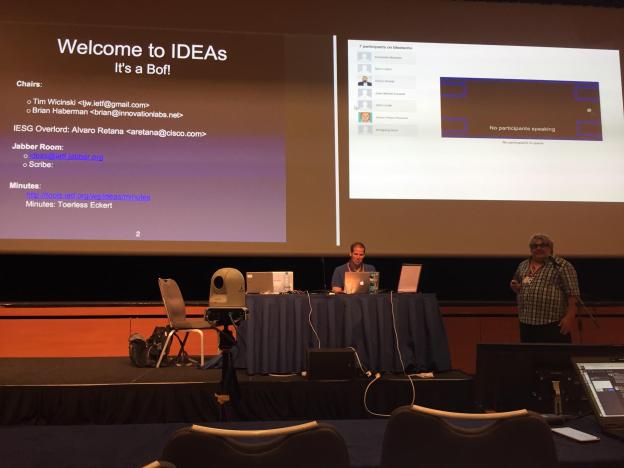 Much of the blame lies with me for not reading through the materials ahead of time, to be sure. The IETF meetings assume everyone is up to speed on all the drafts and documents and mailing list traffic. As a newcomer trying to sample many different projects I simply didn’t have hours and hours to read over all the drafts before going to the different meetings. However at all the other sessions I attended I mostly got the gist of everything even if I was not intimately familiar with every detail and issue of conflict at the WG. The IDEAS session was very different.