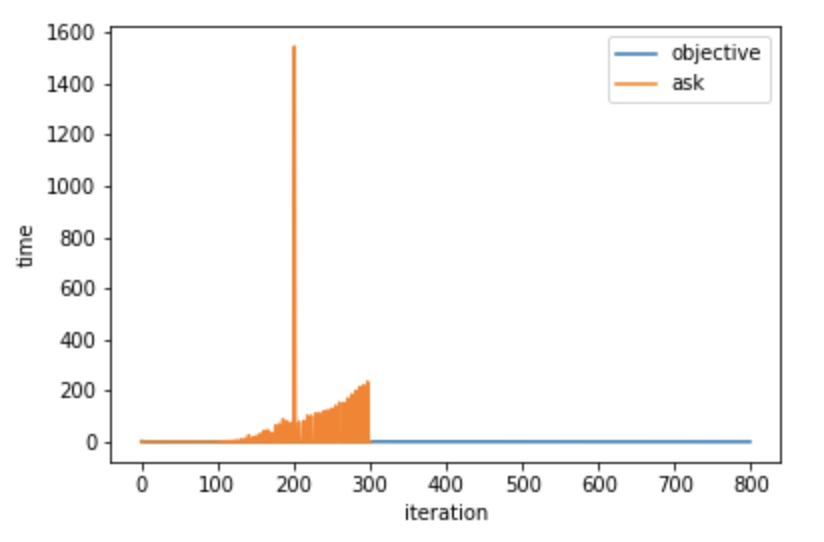 Once you have your inputs and objective function you can run the optimizer in a number of ways. The more iterations it runs for, the better an answer you will get. Unfortunately in my limited experiments it appears to take longer to decide on what inputs to pick next with each iteration, so there may be something wrong with my implementation or diminishing returns with the optimizer.